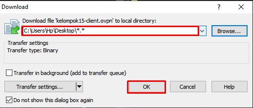 14. Untuk mengambil file client openvpn pada server ubuntu kita dapat menggunakan aplikasi FTP seperti WinSCP.